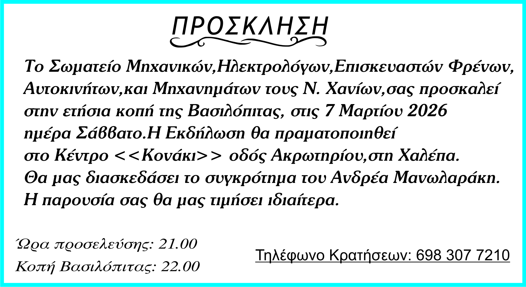 - Το Σωματείο Χανίων πρότεινε στον Υπουργό Κυρανάκη τη δημιουργία Εθνικής Ψηφιακής Ταυτότητας Οχήματος για τον εκσυγχρονισμό του στόλου.